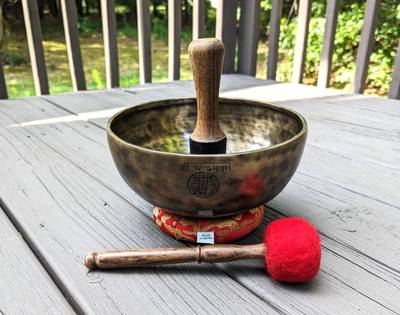 Chanting this Mantra and mixing it with the vibration of the sound bowl helps one to go beyond our regular perception of reality and provides glimpses of the Bhraman itself. And This bowl has AUM symbol to represent the absolute Bhraman.